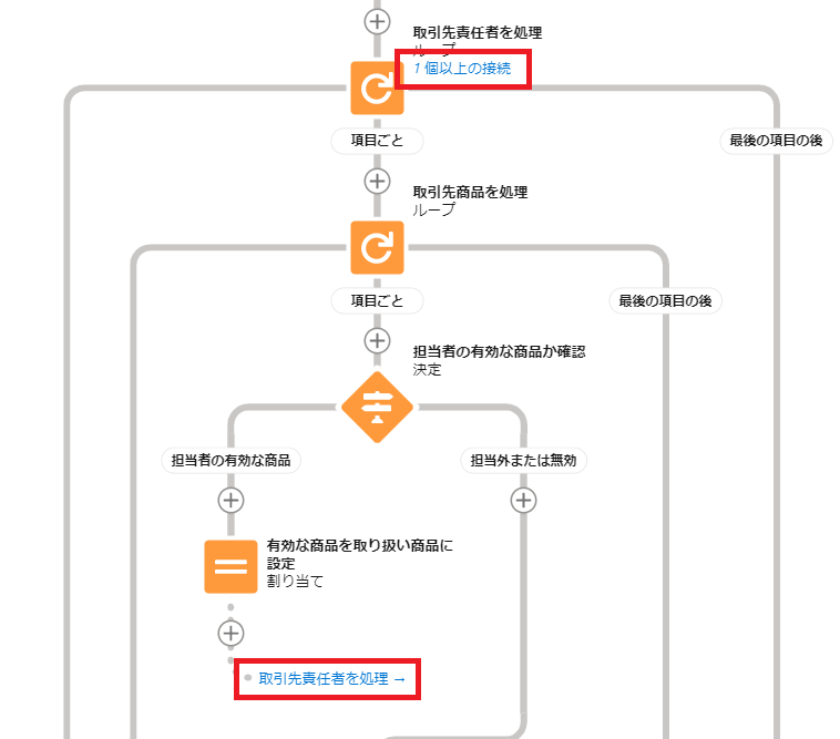 また、今まではできなかったループ内のパスをループ外に接続したり、ループ内でフローを終了したりすることができるようになりました。