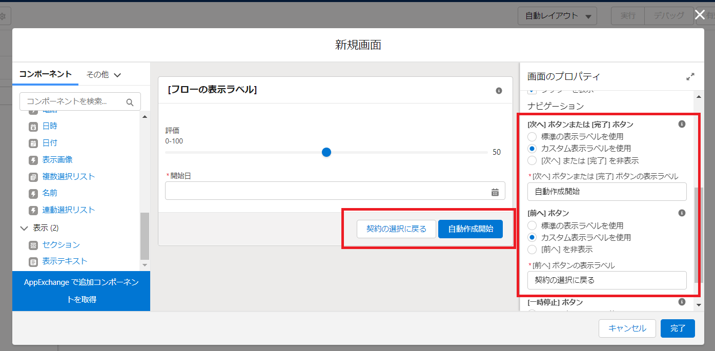 ●フローナビゲーションボタンのカスタム表示ラベル