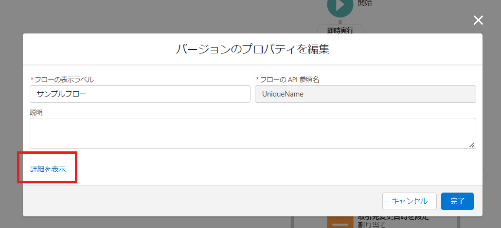 レコードトリガフローの実行順序の指定続いて「詳細を表示」リンクをクリックします。