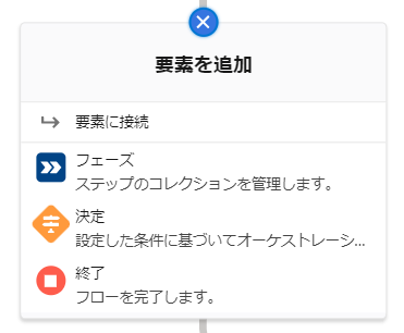 フローのように要素で構成されますが、フェーズと決定で構成されます。