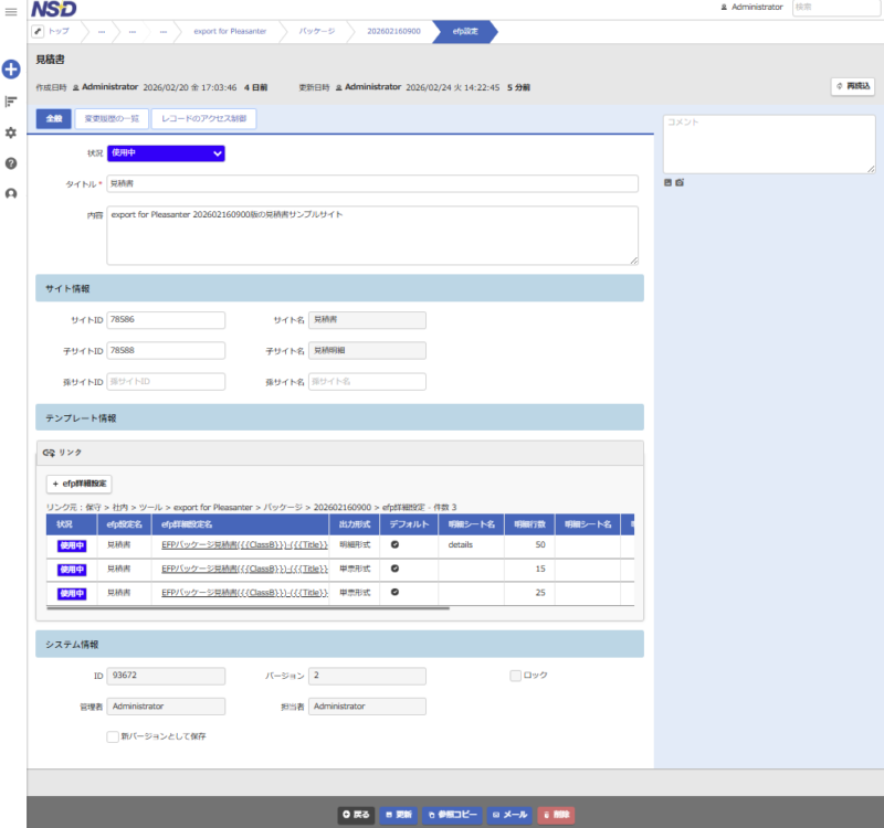 export for Pleasanterのサイト管理を行うefp設定サイトについて説明します。