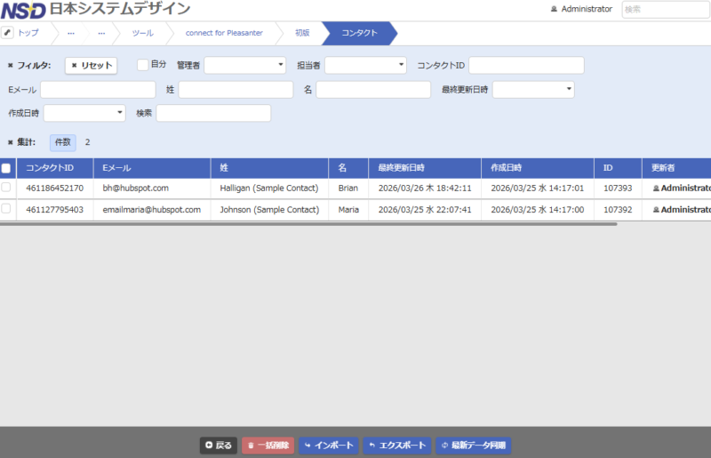 connect for Pleasanterで、HubSpotのコンタクト情報を取得しコンタクトサイトを作成します。
